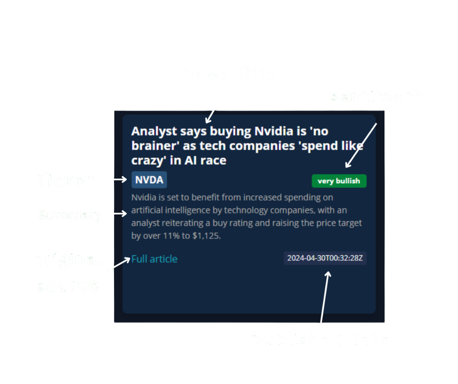 This platform leverages AI to interpret news and financial data, helping users understand current market trends and emotions surrounding various stocks. It provides an accessible way to gauge the mood of the market, which can be crucial for making informed trading decisions, especially in volatile or rapidly changing environments.